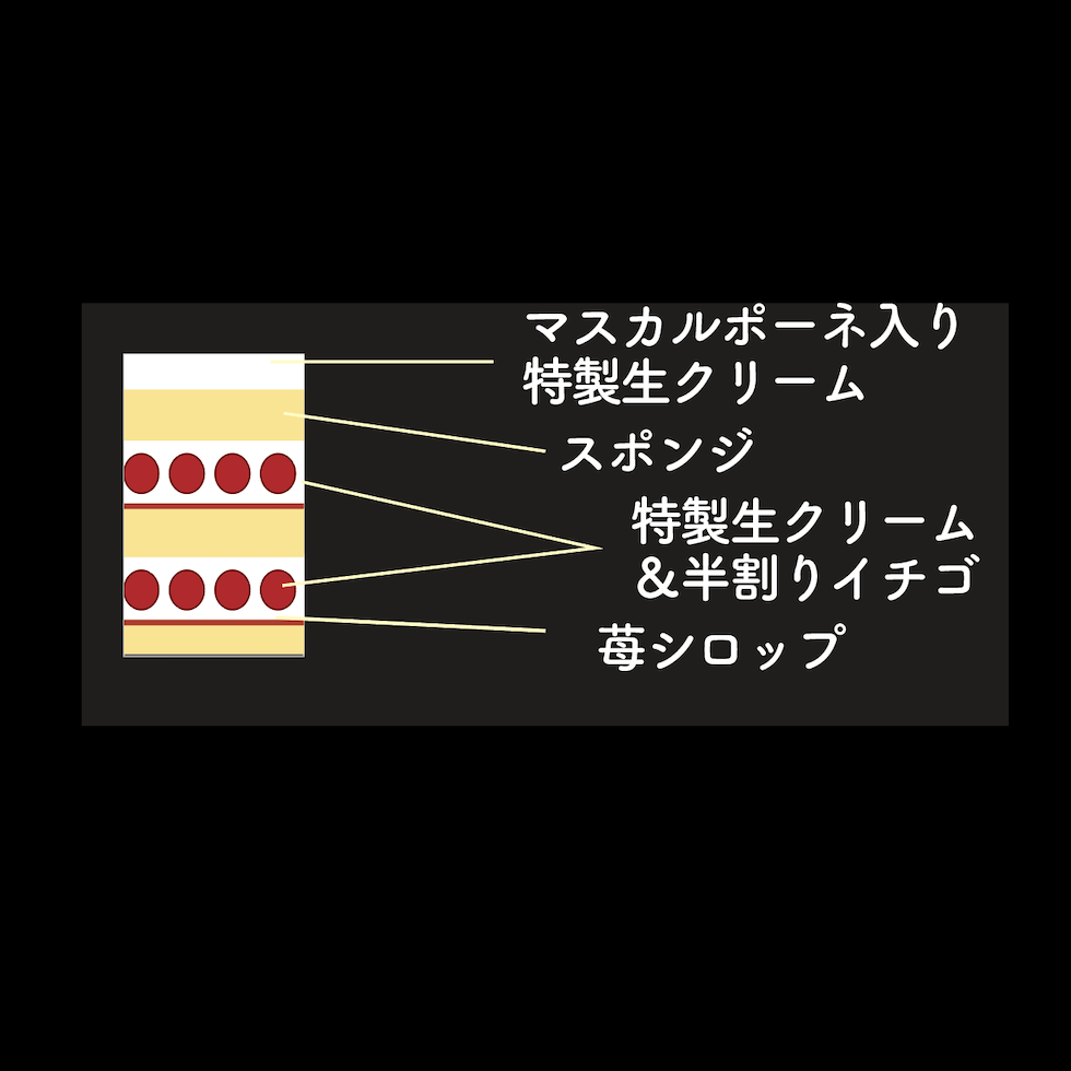 絹のようなしっとりふわふわスポンジに完熟苺のソースを塗り、大粒苺を贅沢に2層にサンド。