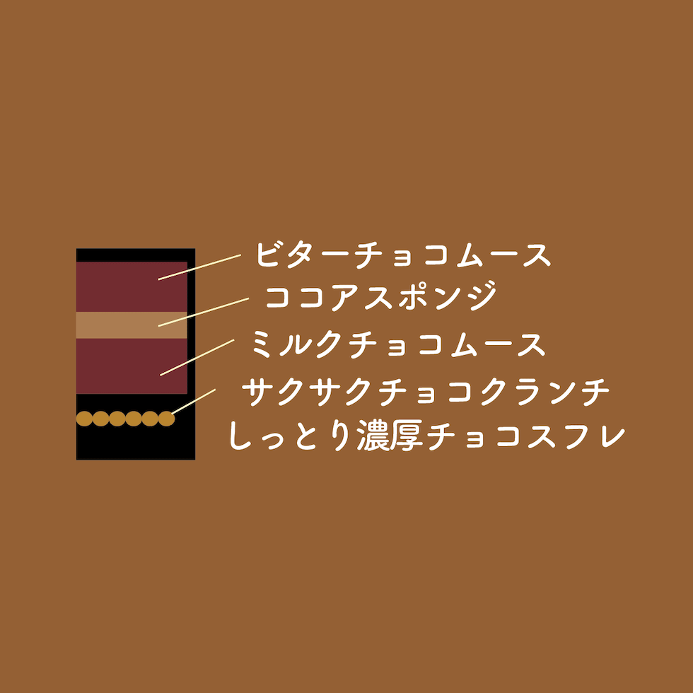 3層にわたりチョコレートをふんだんに使った、まさにチョコレートずくしの逸品です。