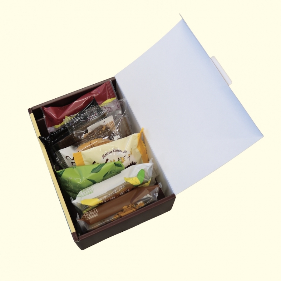お菓子が生まれた風景をご紹介するミニリーフレット付でどんな用途にもご利用頂けるギフトです。
